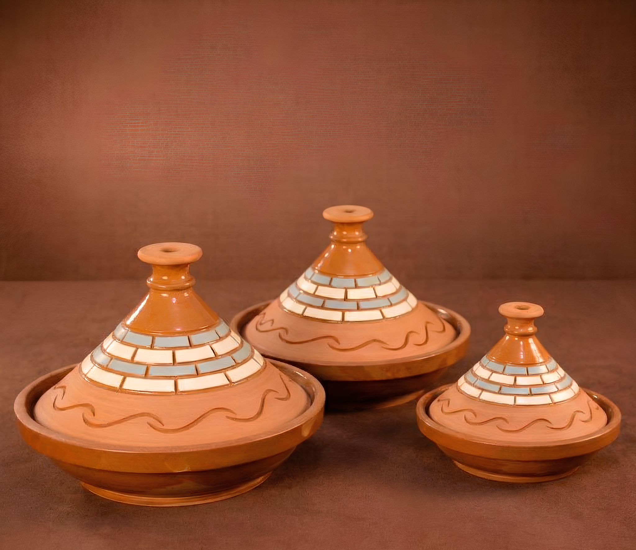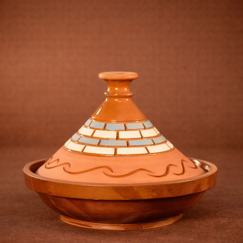 طاجن مغربي أصيل بحجم عائلي لطهي اللحوم والخضروات ببطء والحصول على نكهة مركزة.