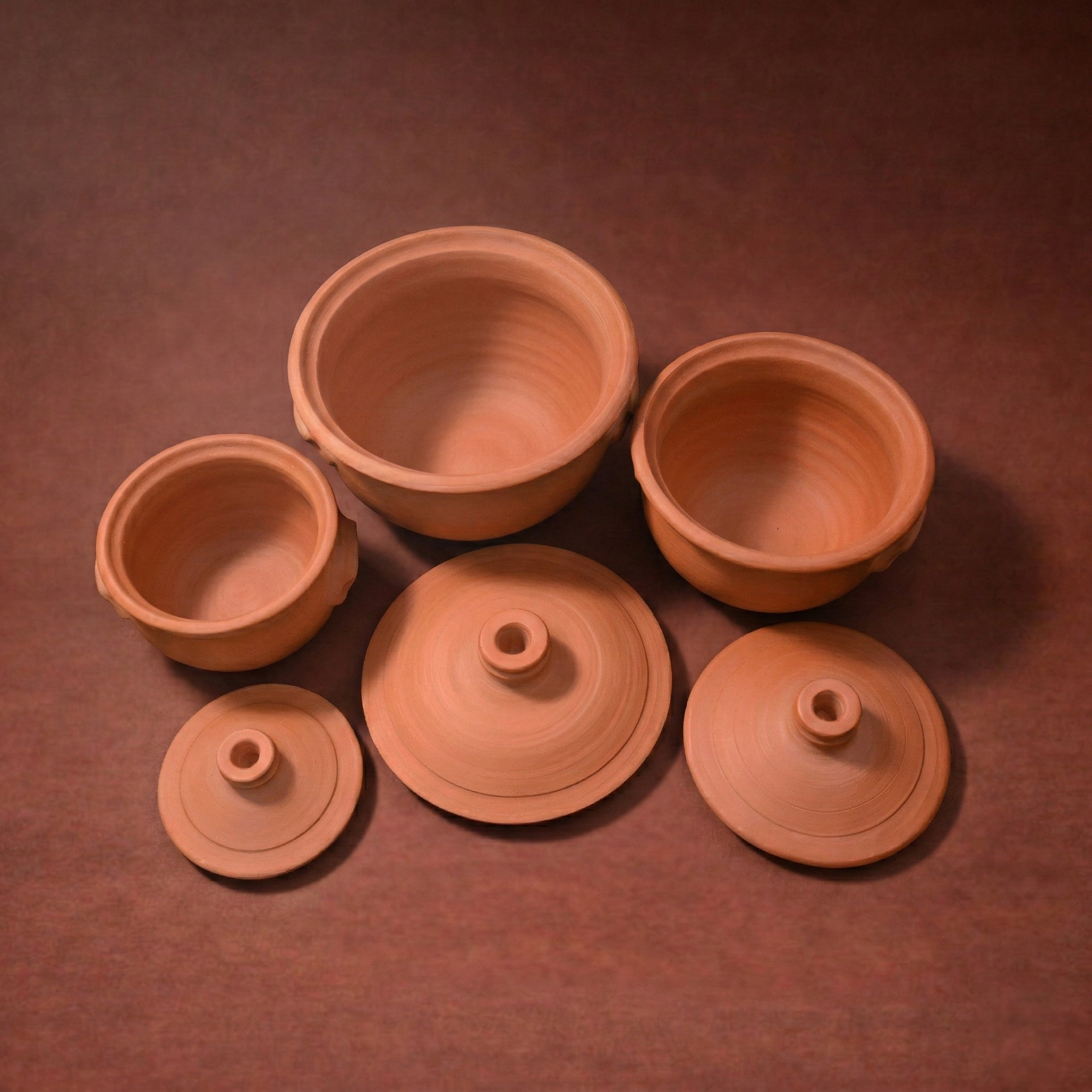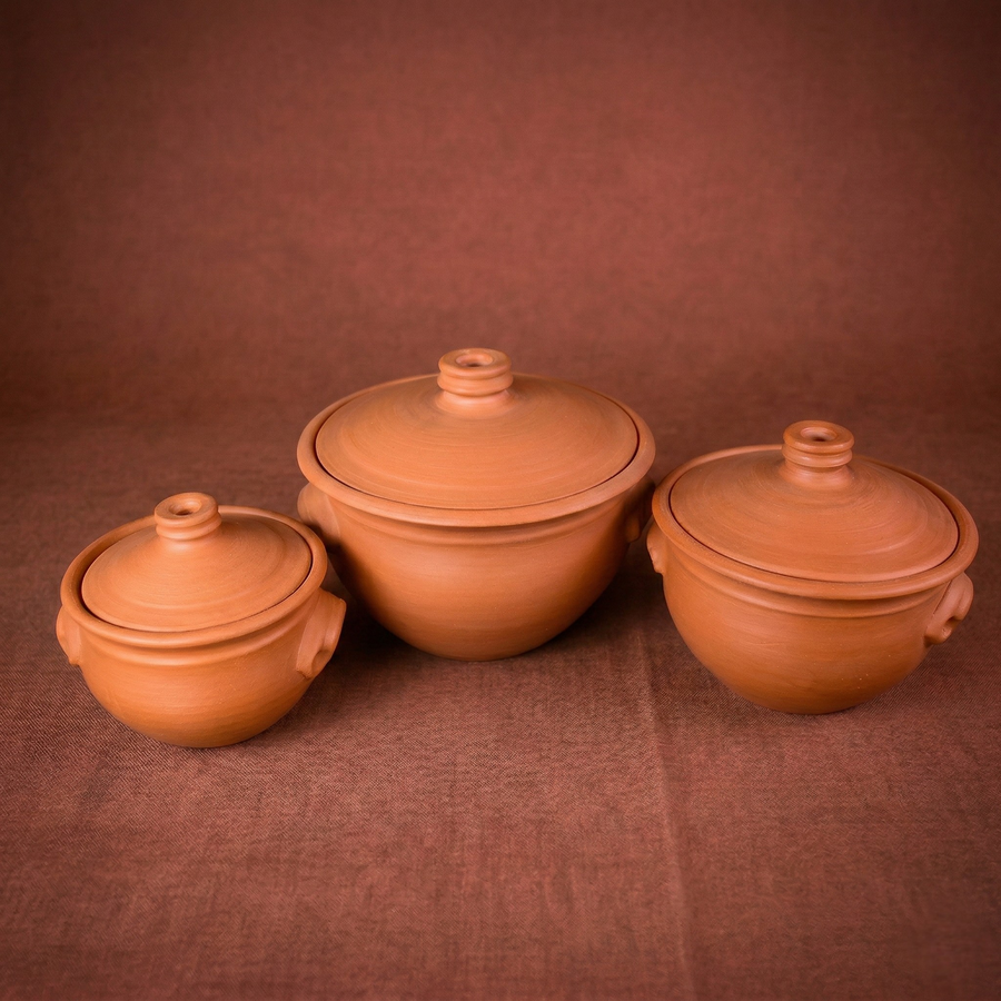 طقم حلل التيراكوتا الملكي (3 قطع) – صحة 100% وتوزيع حراري مثالي